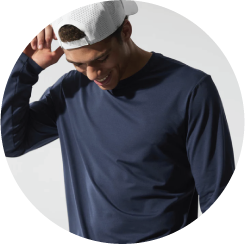 Secure placement: 1" waistband sits below chest to prevent Sweat-wicking material 55% Cotton, 37% Modal, 8% Elastane